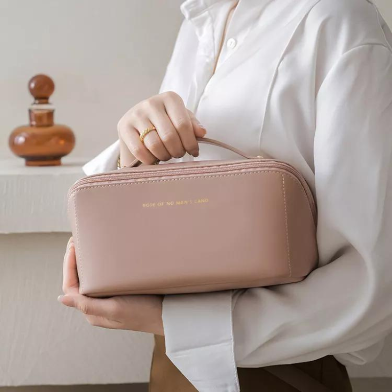 Nema više kompromisa i presipanja u male posude. Glamora neseser je dovoljno prostran da stane kompletna rutina nege i šminkanja – od visokih bočica tonera i losiona, preko četkica, do paleta i karmina. Široki otvor i pregledan raspored omogućavaju da odmah vidiš sve što je unutra i uzmeš bez prekopavanja.