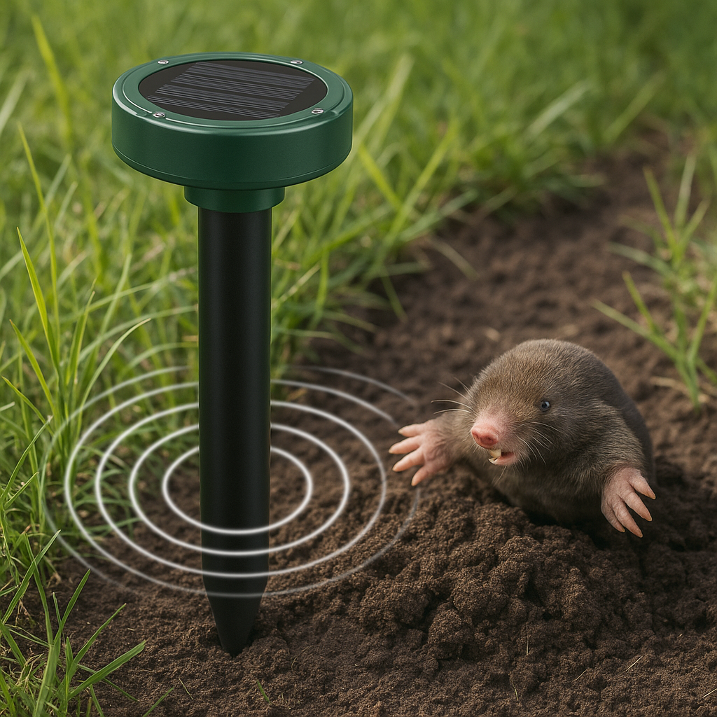 Za razliku od zamki, otrova ili dimnih bombi, ovaj uređaj koristi samo solarnu energiju da bi emitovao nežne vibracije koje krtice ne podnose – zbog čega same napuštaju to područje.